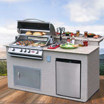 Cal Flame takes pride in ensuring high-quality standards for every Outdoor Kitchen they manufacture. The construction process begins with a sturdy metal frame made from commercial-grade 16-Gauge Galvanized Steel. For added durability and moisture resistance, the island is covered with a Hardibacker ceramic tile backer board. The next step involves finishing the outdoor kitchen with the material of your choice and fitting it with the cooking equipment you have selected. Moreover, you can personalize your outdoor kitchen by selecting premium electronic options to create a complete entertainment center outdoors. With Cal Flame Outdoor Kitchens, you can enjoy outdoor cooking and entertainment with confidence and style.