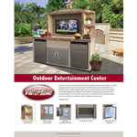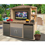 Indulge in an extraordinary backyard entertainment experience with the Cal Flame ODC-1 Paradise Outdoor Entertainment Center. This must-have outdoor center is carefully crafted to provide you with the ultimate outdoor viewing experience. Measuring 54 inches in width and 27 inches in height, it can easily accommodate most 50-inch wall-mounted flat-screen televisions. Your loved ones and friends will be eager to gather around to watch their favorite shows. The four LED lights on the sides accentuate the easily accessible storage areas. Additionally, two temperature-controlled refrigerators offer ample space for storing food and beverages. Behind the 30-inch double access doors, you will find a bottom storage space for your favorite snacks or accessories that don't require refrigeration. The unit boasts a neutral Stoney Creek Ameristone stucco finish. Customize the aesthetic of your outdoor entertainment center with the material colors of your choice!