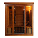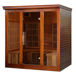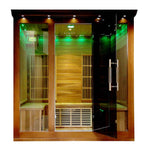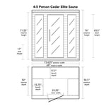 This roomy 4-5 Person Cedar Elite Premium Sauna is packed with high-end features including thicker heat-retention wall panels, an easy-clasp assembly system, interior and exterior lighting, tinted safety glass, heavy-duty door hinges, high-performance speakers, an ergonomic backrest, and so much more. The Cedar Elite saunas instantly provide a safe and relaxing atmosphere within your home to spend time unwinding and totally replenishing your body from the day to day stresses of life.