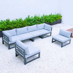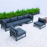 Set up a spot for Fresh air, chilled drinks & warm breezes, whether you're looking to host the neighbors in style or just spread out to enjoy warmer weather there's no better way to extend your living space than with our Chelsea modern outdoor sectional set. We have a professional outdoor design team, focusing on the design of high-quality and weather resistance outdoor sectional sets. The solid structure frame ensures stability and the cushions come with ties lock the cushions for placement where you want them. Sitting enough for six people Shape the sectional in the traditional U-Shape or you can shape it however you like to help you make the most out of your patio or deck.