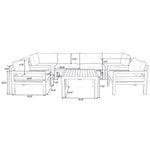 • Includes 2 Arm Chairs, 2 Corner Chairs, 2 Armless Chairs & 1 Coffee Table.