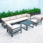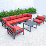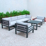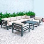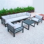 Set up a spot for Fresh air, chilled drinks & warm breezes, whether you're looking to host the neighbors in style or just spread out to enjoy warmer weather there's no better way to extend your living space than with our Chelsea modern outdoor sectional set. We have a professional outdoor design team, focusing on the design of high-quality and weather resistance outdoor sectional sets. The solid structure frame ensures stability and the cushions come with ties lock the cushions for placement where you want them. Sitting enough for six people Shape the sectional in the traditional U-Shape or you can shape it however you like to help you make the most out of your patio or deck.