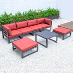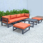 LeisureMod Chelsea 7-Piece Patio Ottoman Sectional And Coffee Table Set Black Aluminum With Cushions
