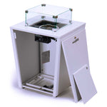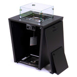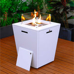 Both a fire pit and side table in one! Enjoy the ultimate in backyard ambiance year-round with this cozy, elegant, and functional outdoor Chelsea Fire Pit Table. Sit around with food and drink while being warmed by the beautifully lit fire. Complete with a 37,000 BTU CSA-certified burner, you can enjoy all the pleasures of a classic fire without worrying about messy ashes. The lid allows you to close the surface top and use it as a stylish tabletop. Also included are some crystal stones to beautifully accent the flames. Whether it's on a porch, patio or in your garden, this fire pit side table makes a classy addition to your home.