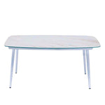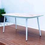Enjoy this Dining table form our Spencer Collection. This table brings together stunning, hand-crafted marble with smooth iron frames to create a sleek and comfortable space for your home. This table is water-resistant for effortless relaxation throughout the summer season. With sturdy, solid frames, and beautifully design, this table will have no problem blending into your outdoor decor with its modern style and incredible durability.