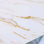 - Table top is made out of high-quality Marbleized Glass. Base is made out of High-Quality Powder Coated Iron.