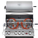 The 4-Burner Convection Drop-In Grill from Cal Flame provides an expansive cooking space and features innovative convection technology. Its durable 304-stainless steel burners generate a powerful 75,000 BTU and come with a one-year warranty. Additionally, the infrared back burner is perfect for rotisserie cooking. With the ability to grill 50% faster, this grill delivers exceptional gourmet results.
