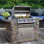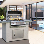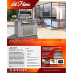 Built with a simple and modern design, the LBK-601 outdoor kitchen is perfect for any patio space. This island is just the right size to fit into any corner of your outdoor area. The LBK-601 comes equipped with a 75,000 BTU 4-burner Cal Flame Grill, a centralized 27" access door for your propane tank, and outdoor electrical outlets for your electronic devices. It also offers ample space on each side of the grill for your main dishes. This versatile island is customizable to your specific taste and preferences.