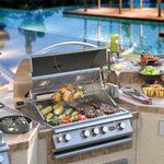 Looking for a pro-style grill for your outdoor kitchen? Look no further than the Cal Flame P4 4-Burner Drop-In Gas Grill. Built with 304 stainless steel, this 32-inch grill features four 15,000 BTU cast stainless steel burners, each with an easy-start ignition system for quick and easy start-ups. Plus, with a 15,000 BTU ceramic core infrared burner, you can take your grilling game to the next level. And if you're looking for even more versatility, you can swap out any of the burners for an optional Sear Zone burner or Smoke Tray.
