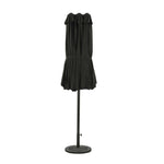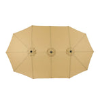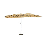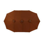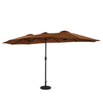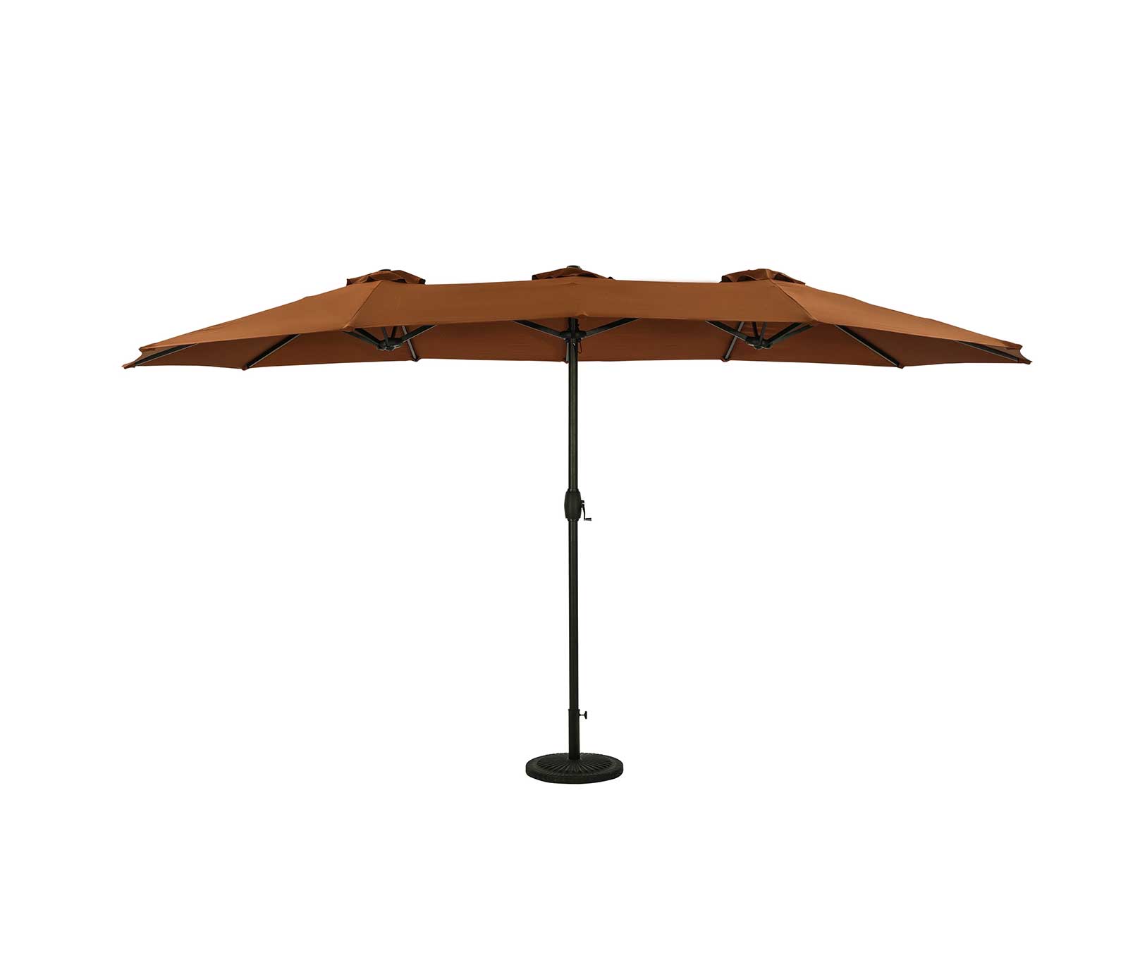 The Eclipse 15-ft Oval Dual Market Umbrella makes the perfect addition to any backyard, patio or deck. Its aluminum rust-resistant pole features a gorgeous, powder-coated bronze-tone finish. This umbrella is also easy to operate, with a simple, intuitive crank that makes it easy to open or close the canopy.