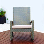 Enjoy your patio with this stylish and comfortable Duval rocking chair. There is nothing that will make you feel better than sinking into a cozy rocking chair with a crisp drink after a long day of hard work, You can rock the chair slowly and gently, which is sure to bring you a fantastic feeling. Comes with an angled backrest, slightly downward handrails, and thick cushions, the rocking chair offers the most cushioned, comfortable support so you can glide and rock freely. Designed in rustic style, it is perfect to place the rocking chair in outdoor or indoor space such as the living room, patio, backyard, and garden.