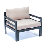 Set up a spot for Fresh air, chilled drinks & warm breezes, whether you're looking to host the neighbors in style or just spread out to enjoy warmer weather there's no better way to extend your living space than with our Chelsea modern outdoor armchairs. We have a professional outdoor design team, focusing on the design of high-quality and weather resistance outdoor armchairs. The solid structure frame ensures stability and the cushions come with ties lock the cushions for placement where you want them. This is the perfect addition to make the most out of your patio or deck.