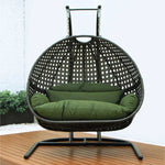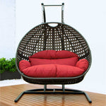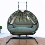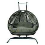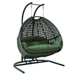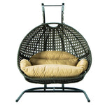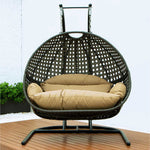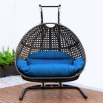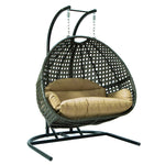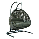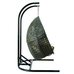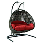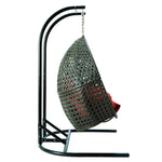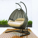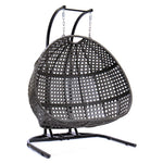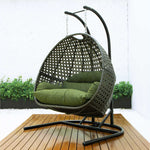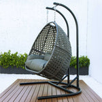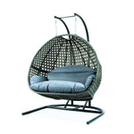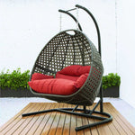 This fun egg-shaped porch swing chair that fits 2 people comfortably was built to last in the outdoors with its strong durable iron frame it will be perfect for all weathers. Sit in luxurious comfort while surrounded by the peace and beauty of your backyard, or enjoy a good book indoors with this comfortable hanging chair.
