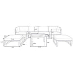 - Includes 2 Ottomans, 2 Corner Chairs, 2 Armless Chairs & 1 Coffee Table