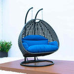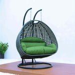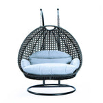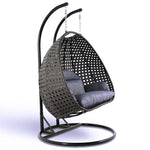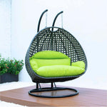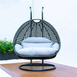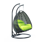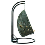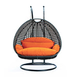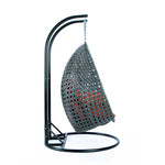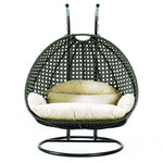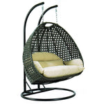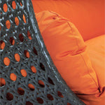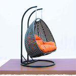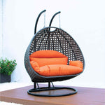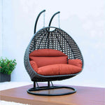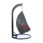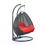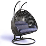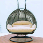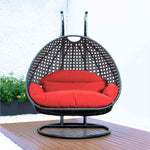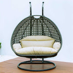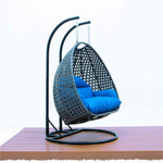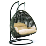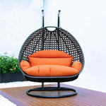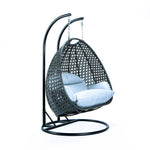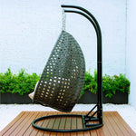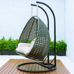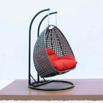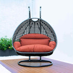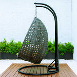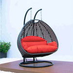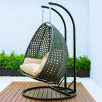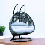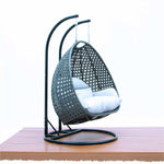 This fun egg-shaped porch swing chair which fits 2 people comfortably was built to last in the outdoors with its strong durable iron frame it will be perfect for all weathers. Sit in luxurious comfort while surrounded by the peace and beauty of your backyard, or enjoy a good book indoors with this comfortable hanging chair.