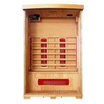 The oversized interior cabin features 40% more space than price driven competitors, creating the ultimate sauna experience. The 2-Person Deluxe Infrared Sauna model is perfect for relaxing and rejuvenating with your special someone on the extra deep bench that runs along the back wall of the sauna. It will fit in virtually any room in your house! The EZ-Touch dual interior and exterior LED control panels allow for easy temperature control.