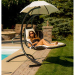 STYLISH SHADE PROTECTION – This contemporary, ultra-comfortable hanging chaise lounge features an oversized umbrella shade with six fiberglass support ribs that quickly adjust to provide protection from the sun.