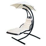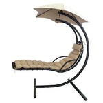 Lay back, relax, and create a soothing outdoor experience by softly swaying your body back and forth, side to side, in the Hanging Chaise Lounge Chair. This great chair features a heavy-duty steel full body support frame, soft padded poly-filled cushion pad with a built-in durable pillow and comfortable padded armrests. A convenient adjustable umbrella shade is perfect for shading out direct sunlight as needed. 1-year limited warranty.